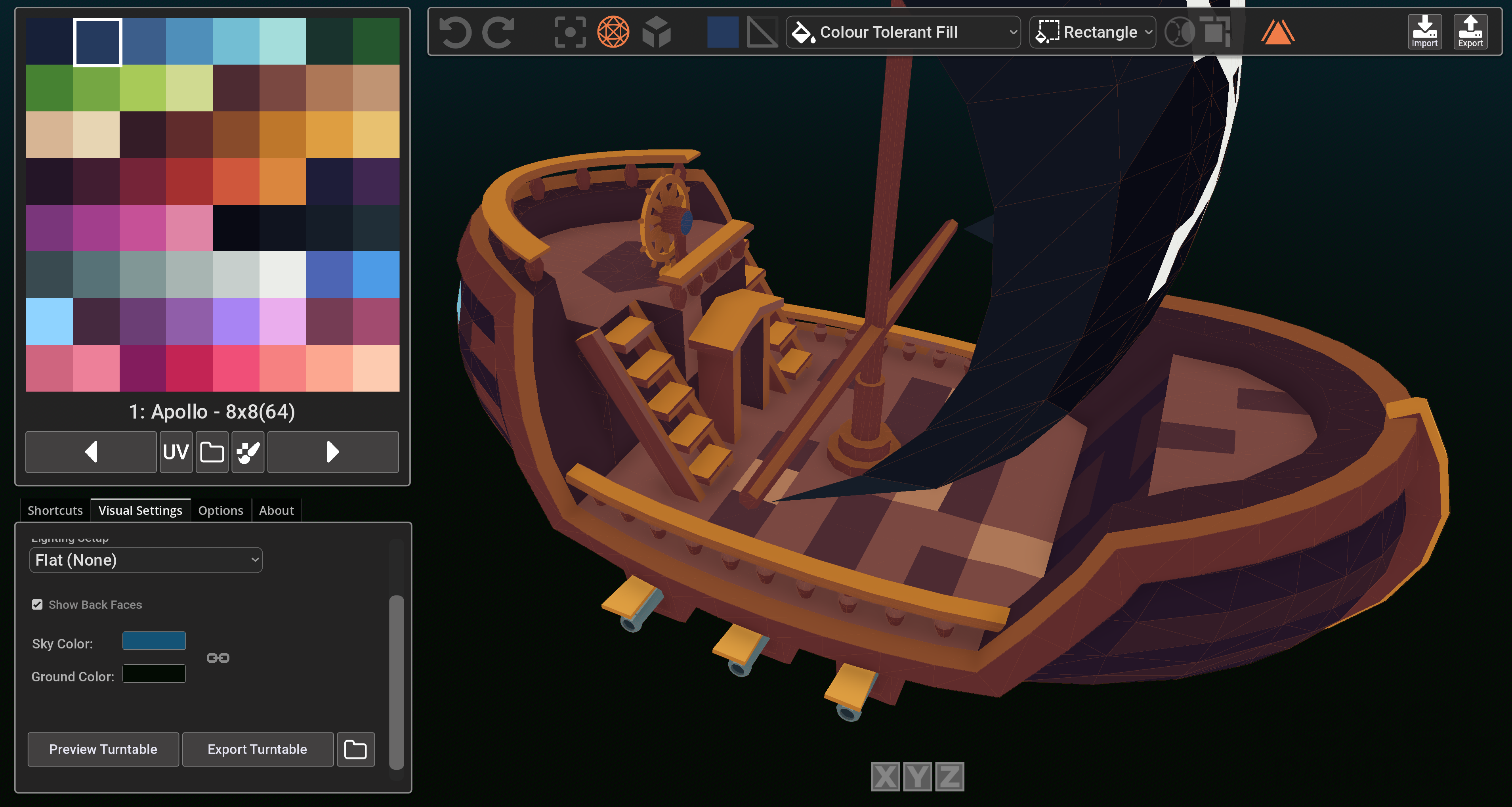 - 1 pixel per triangle workflow. Compact, precise, and uniquely stylized.