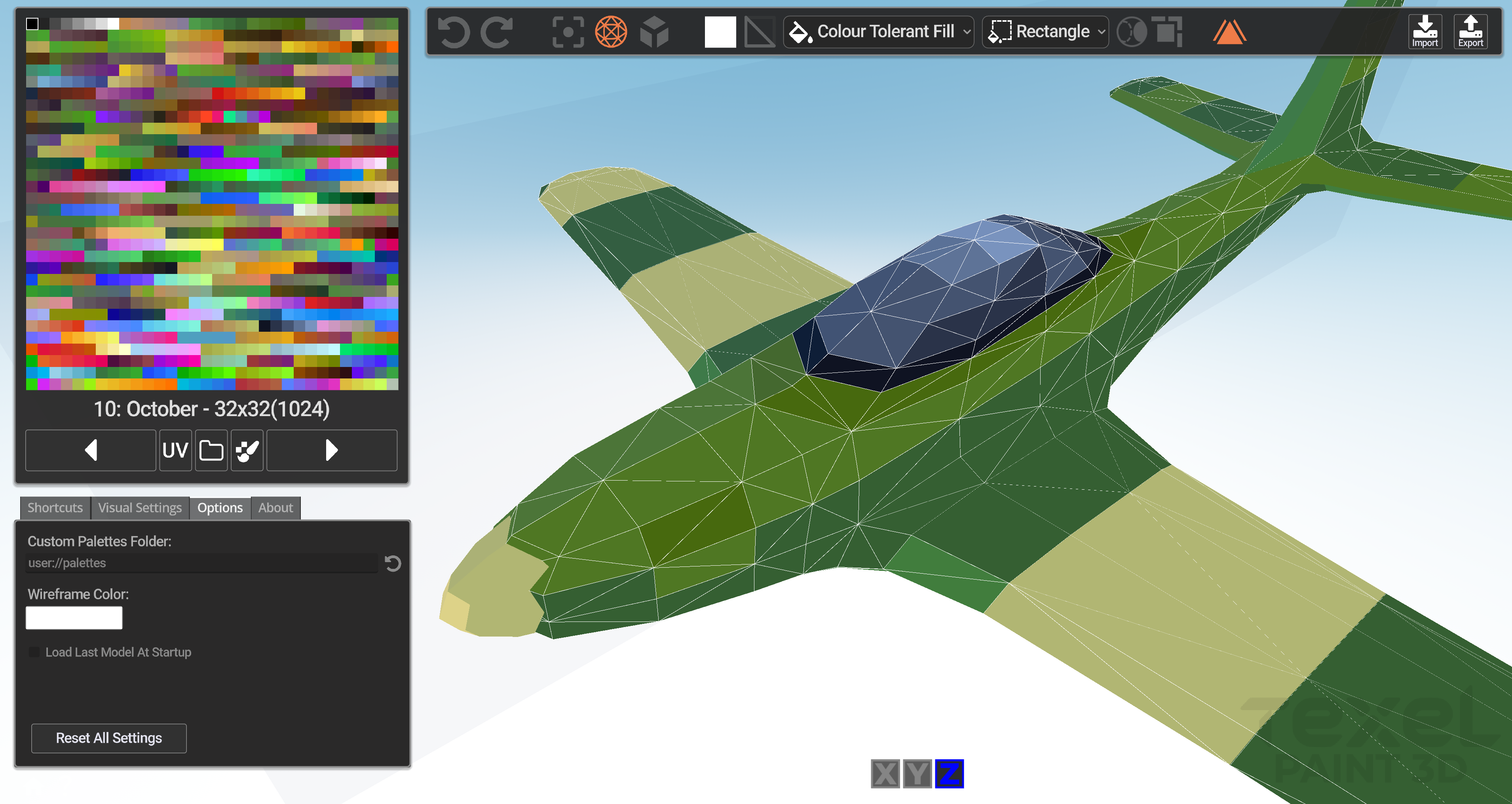 - Paint triangles (or quads) like pixels. Fast, intuitive, and incredibly fun, just click and color.
